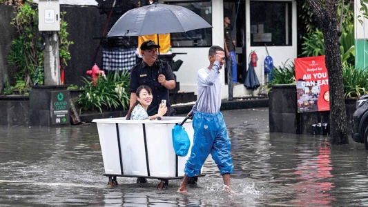 Мощные наводнения затапливают районы острова Бали в Индонезии