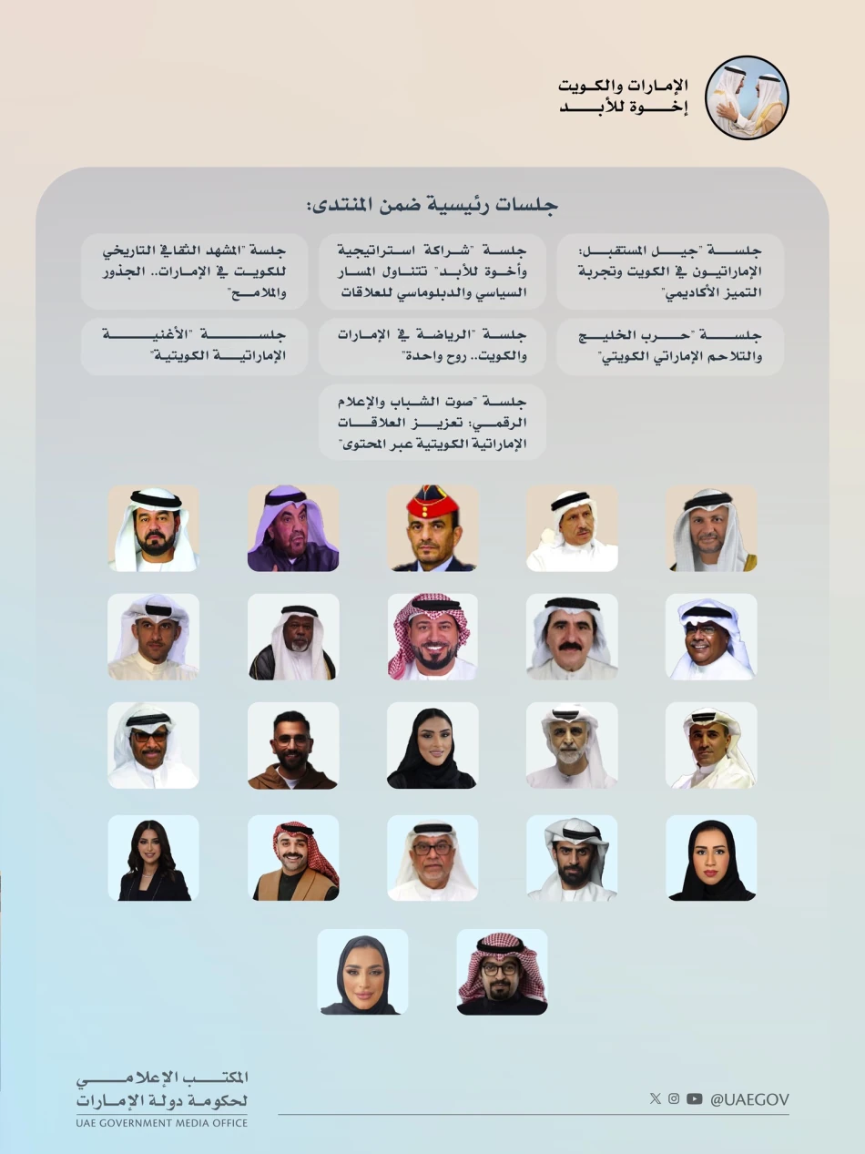 Отдельная сессия посвящена музыкальному сотрудничеству. Совместные песни эмиратских и кувейтских артистов стали культурными символами для всего Залива. Форум также затронет влияние цифровых медиа на современные отношения между странами.
