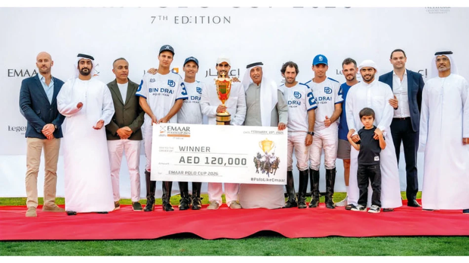 Команда Бин Дри под руководством Мохаммеда бин Дри выиграла седьмой чемпионат Эмаар по поло в Дубае, обыграв команду Джахангири со счетом 7-6,5 в напряженном финале. Победители получили 120 тысяч дирхамов и автомобиль от Legend Motors, что показывает растущий статус поло в ОАЭ.